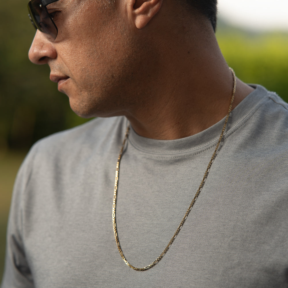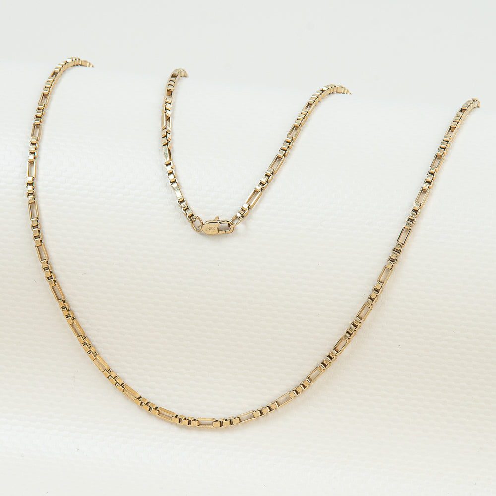 Cadena de Oro Laminado Italiano 18K con diseño clásico y acabado brillante. Perfecta para usar sola o con otros accesorios, combina elegancia y durabilidad. Una pieza resistente que mantiene su belleza a lo largo del tiempo, ideal para realzar cualquier look. Todas nuestras joyas son contramarcadas en sus broches (por un lado el doble lingote que nos identifica y por le otro el 18K).