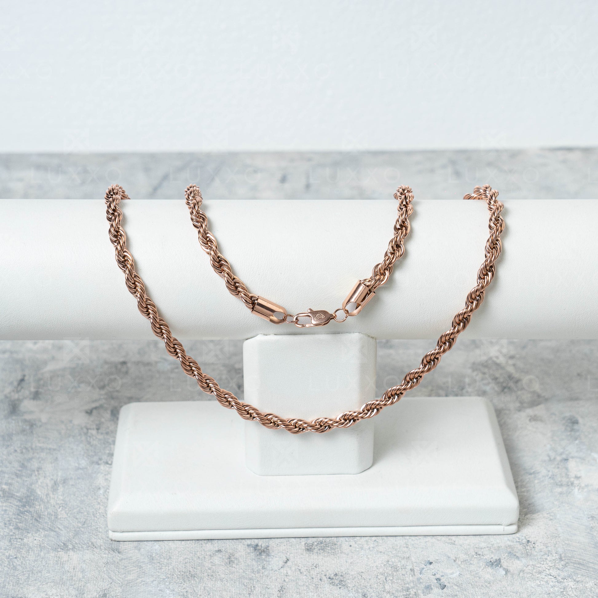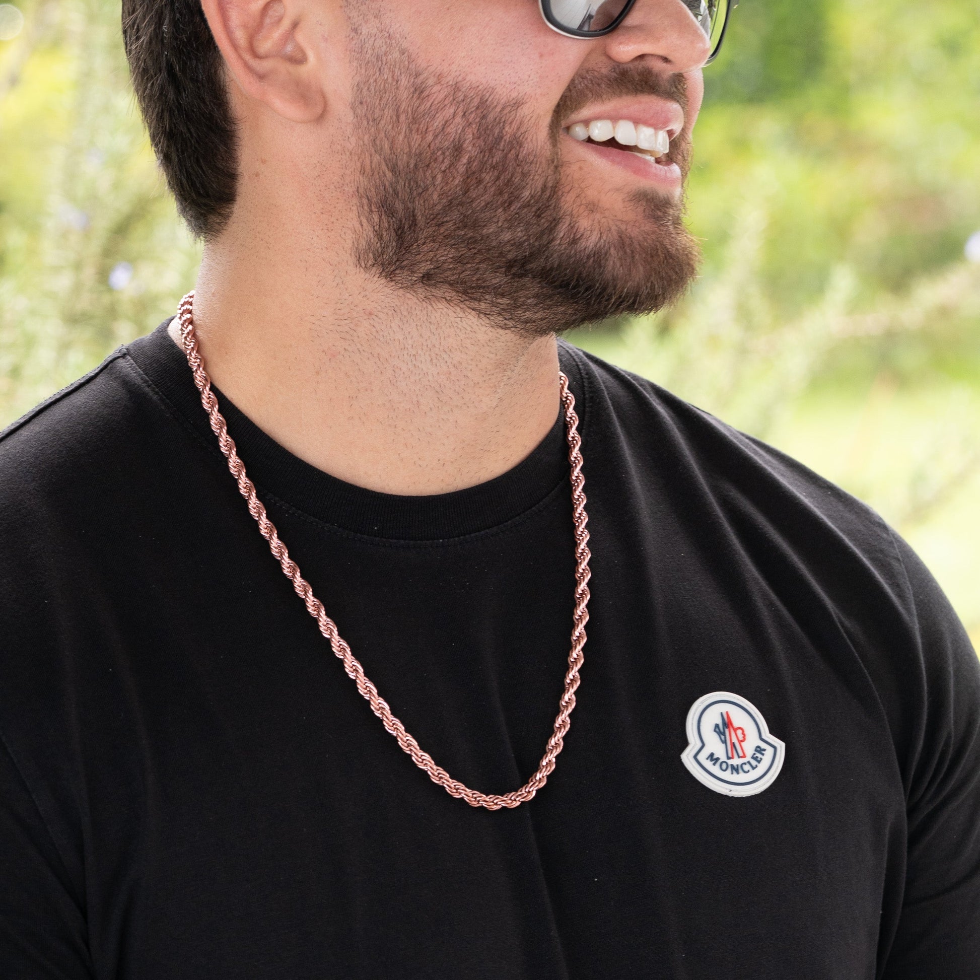 Cadena de Oro Rosa Laminado Italiano 18K con diseño clásico y acabado brillante. Perfecta para usar sola o con otros accesorios, combina elegancia y durabilidad. Una pieza resistente que mantiene su belleza a lo largo del tiempo, ideal para realzar cualquier look. Todas nuestras joyas son contramarcadas en sus broches (por un lado el doble lingote que nos identifica y por le otro el 18K).
