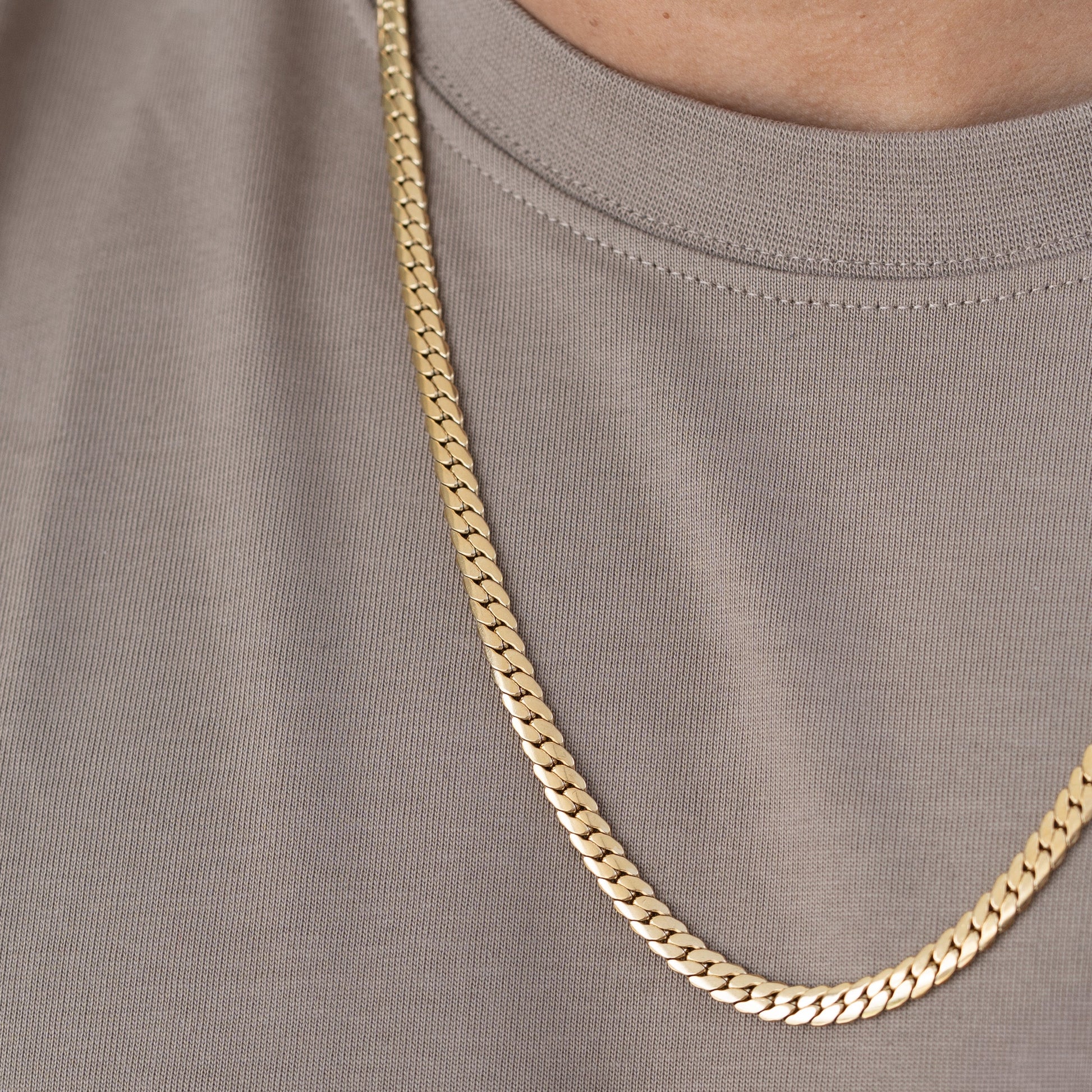 Cadena de Oro Laminado Italiano 18K con diseño clásico y acabado brillante. Perfecta para usar sola o con otros accesorios, combina elegancia y durabilidad. Una pieza resistente que mantiene su belleza a lo largo del tiempo, ideal para realzar cualquier look. Todas nuestras joyas son contramarcadas en sus broches (por un lado el doble lingote que nos identifica y por le otro el 18K).