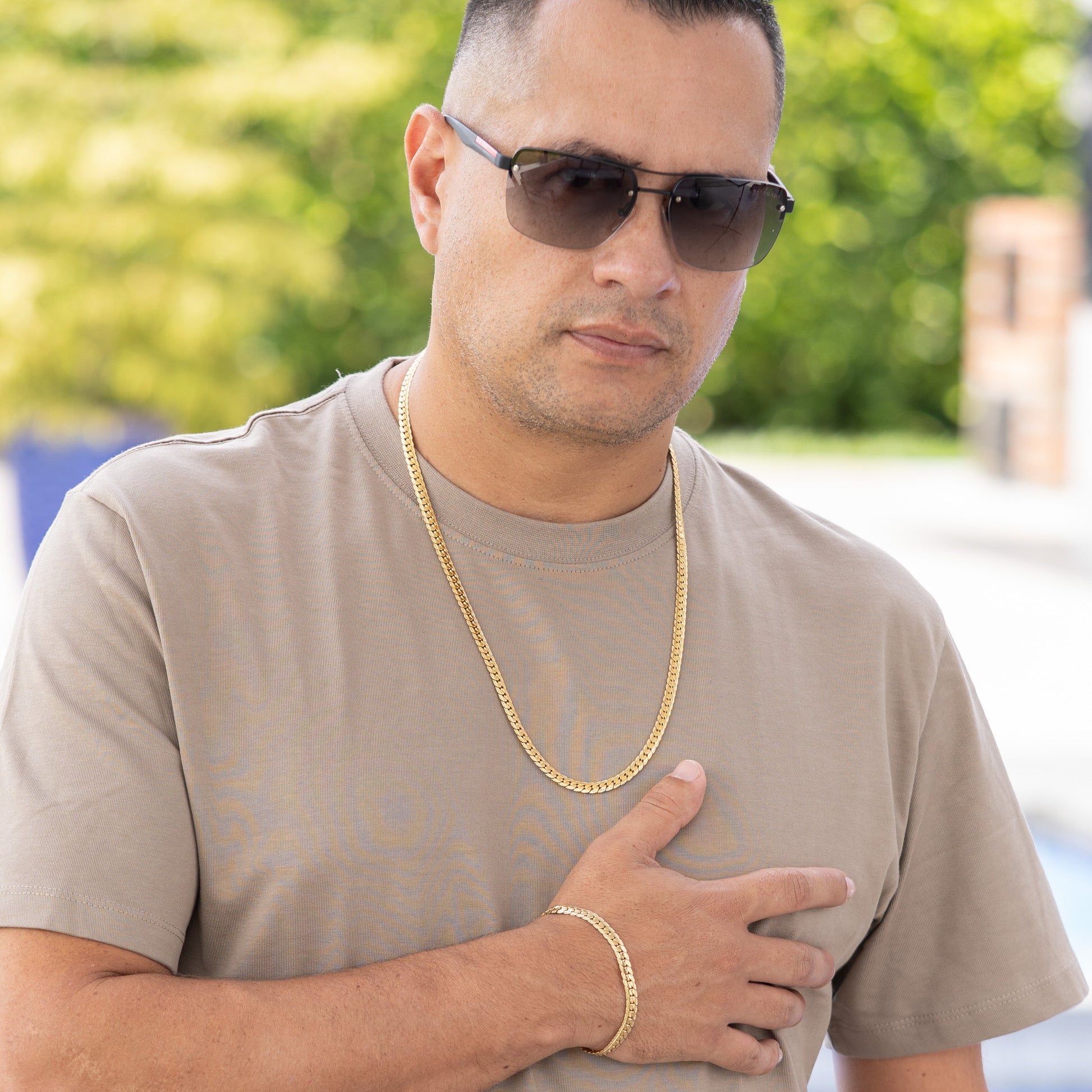 Combo de Cadena y Pulsera de Oro Laminado Italiano 18K con diseño clásico y acabado brillante. Combina elegancia y durabilidad. Una pieza resistente que mantiene su belleza a lo largo del tiempo, ideal para realzar cualquier look. Todas nuestras joyas son contramarcadas en sus broches (por un lado el doble lingote que nos identifica y por le otro el 18K).