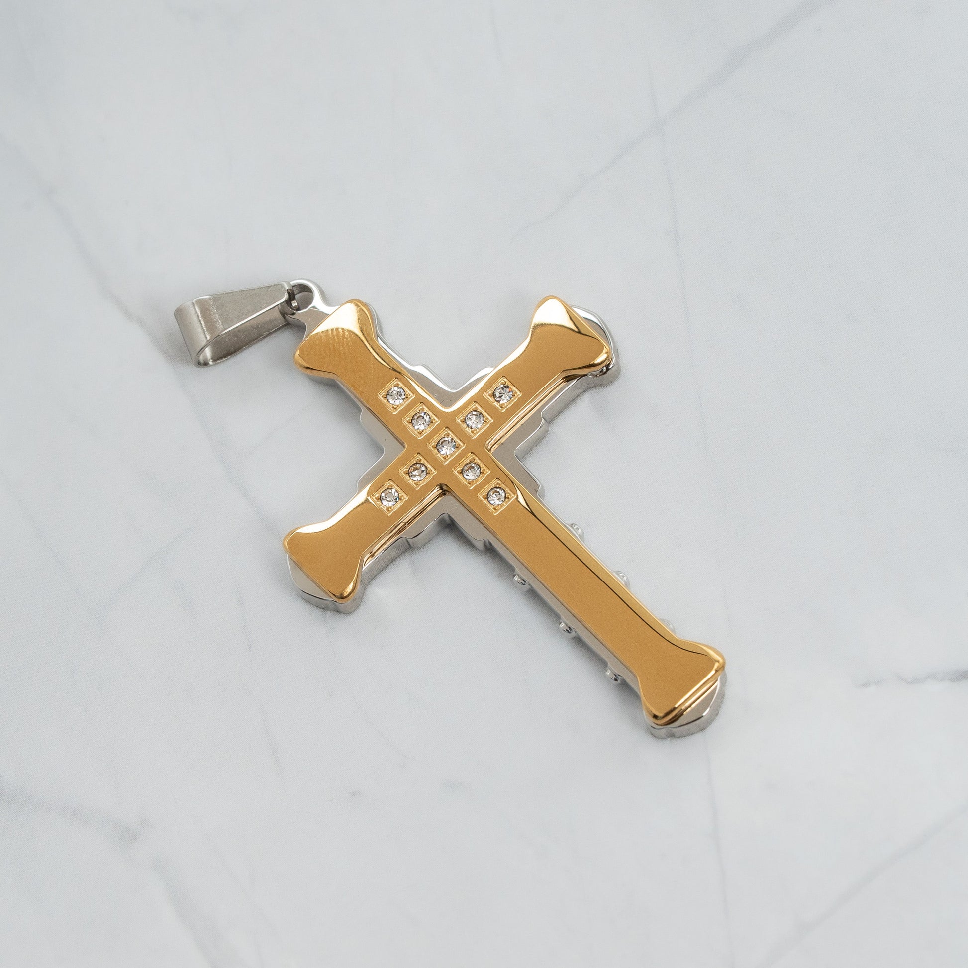 Dije Cruz Cuadros en Oro Laminado Italiano 18K con diseño clásico y acabado brillante. Combina elegancia y durabilidad. Una pieza resistente que mantiene su belleza a lo largo del tiempo, ideal para realzar cualquier look.