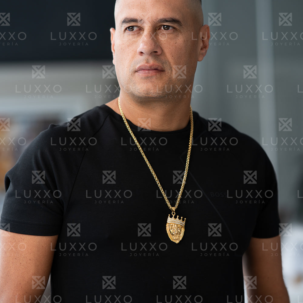 Dije imponente con un diseño arriesgado y llamativo en Oro Laminado Italiano 18K con diseño clásico y acabado brillante. Combina elegancia y durabilidad. Una pieza resistente que mantiene su belleza a lo largo del tiempo, ideal para realzar cualquier look.